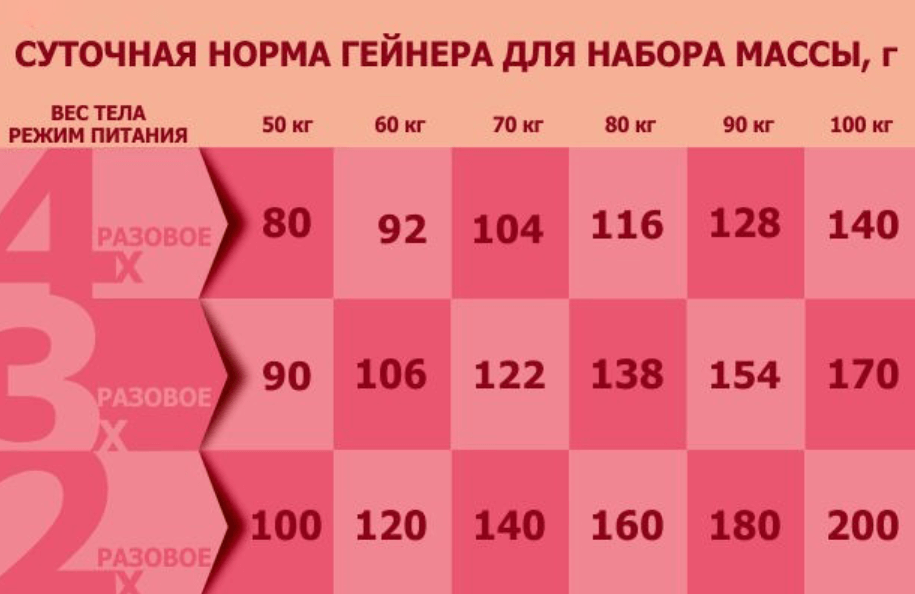 Суточная норма гейнера для набора массы (вес указан в граммах)