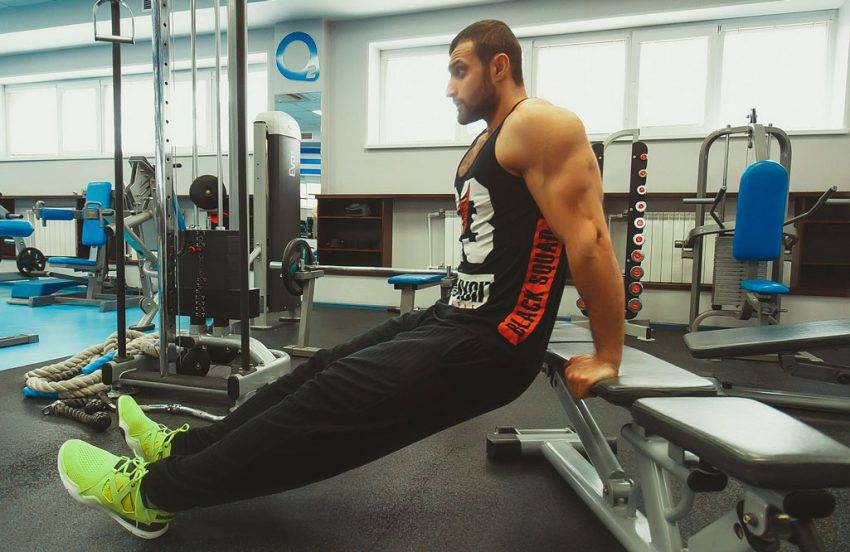 Выполняются со скамьей. К ней становятся спиной, облокачиваются ладонями, слегка приседают. Опускаются и поднимаются за счет сгибаний и выпрямлений рук. Делают не менее 3 сетов по 20 повторов.