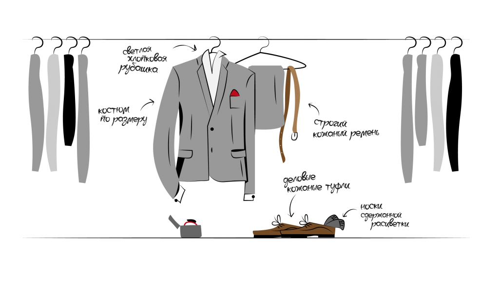 Немаловажно наличие аксессуаров, которые бы сочетались с одеждой и подчёркивали индивидуальность. В любой ситуации выручит костюм