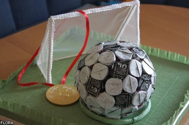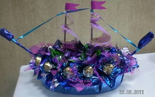 Или можно устроить сладкий креатив, подарить кучу конфет, но необычным образом, согласитесь, так намного приятнее выглядит).