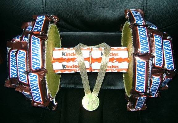 Если ваш любимый спортсмен, да или вы просто делаете подарок мужчине, который увлекается спортом или это работник физкультуры, тренер, то преподнесите ему гантелю с сюрпризом).
