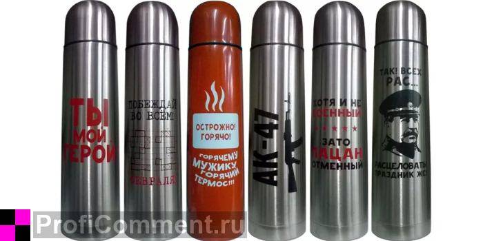 Термос, к тому же, можно взять в поход, поездку. Им можно пользоваться и лето, и зимой. Дизайнерское решение может быть любым. Не обязательно, чтобы термос имел надписи, ассоциирующиеся с 23 февраля. Если таковой сложно найти, то можно подарить обычный и приложить к нему поздравительную открытку.