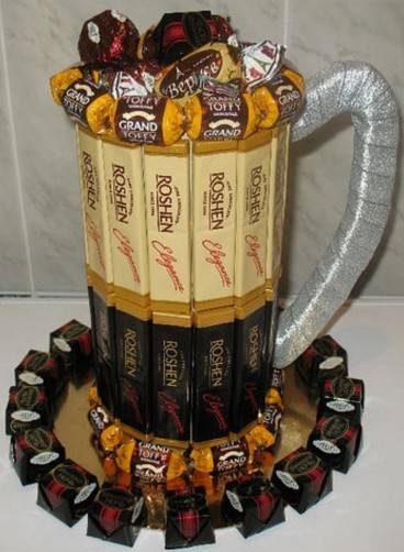 Сладости всегда воспринимаются с улыбкой, при этом не обязывают к чему-либо существенному. Наконец, это экономный подарок. Но не стоит дарить обычную плитку шоколада. Этим никого не удивишь.