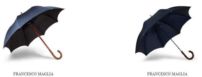 Как диктует закон Мерфи, он, скорее всего, потеряется еще перед тем, как ты его надлежаще используешь. Это ставит нас в затруднительное положение, потому что ни один джентльменский гардероб действительно не будет полным без него. Выбирай красивый зонт Francesco Maglia – два примера из которых показаны ниже – и, возможно, ты будешь помнить забрать его с такси.