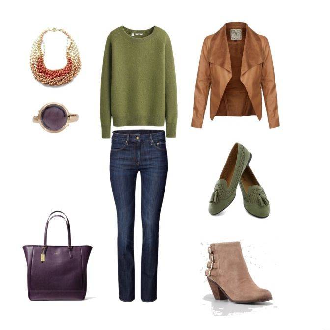 Эти вещи должны сочетаться по стилю с базой, не конфликтовать по оттенкам и крою. Если хотите добавить в образ теплый уютный кардиган, то пусть это будет кофта из мягкой пряжи, без блеска, натуральных природных оттенков, без какого-либо декора.