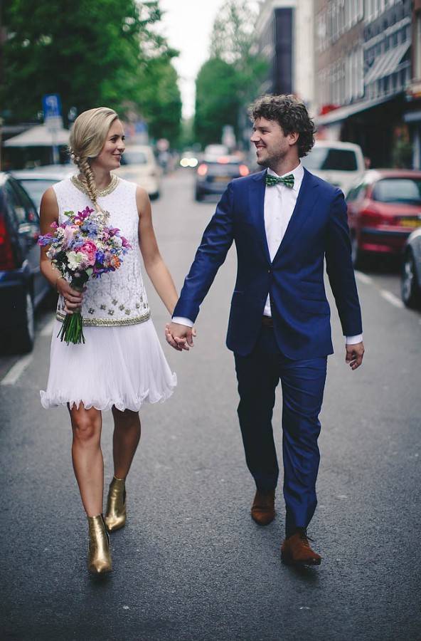 Невеста может комбинировать непринужденность с классикой, либо использовать только кэжуал вещи. Первая комбинация представляет собой сочетание ярких украшений и традиционного платья. Второй вариант является практичным решением, которое позволит носить свадебное платье в повседневной жизни.