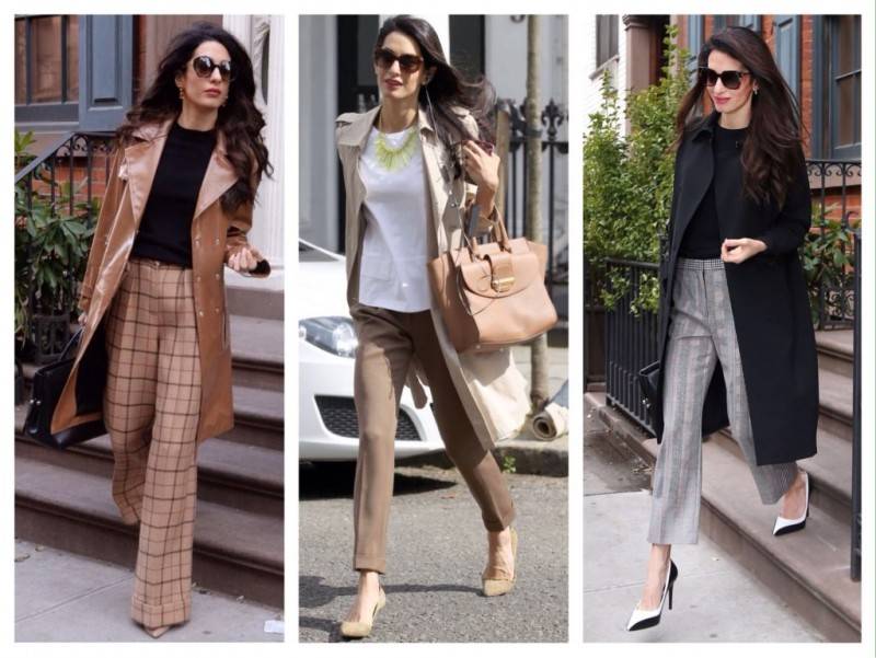 1–2–3 пары брюк, например: классические зауженные со стрелками, укороченные, брюки с высокой талией и свободного кроя с хорошей длиной (чтобы каблук был почти закрыт), строгие кюлоты. В моде также брюки из матовой кожи и эко кожи землистых оттенков. Такой вариант вполне уместен в офисе.
