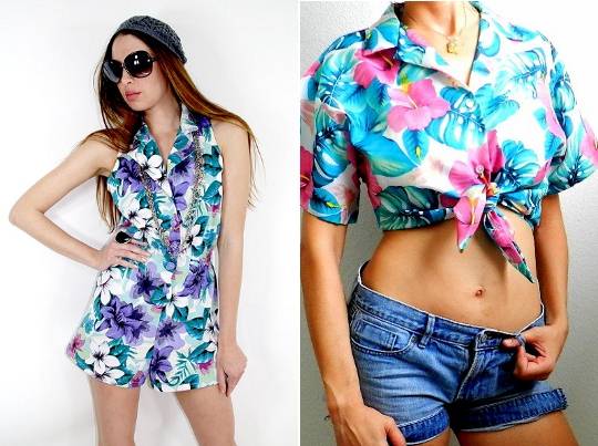 Расцветка рубашек содержит животные, растительные, абстрактные принты, нередко с элементами гиперболизации. Например, очень популярны рисунки с пальмами, морским пейзажем, солнечным закатом, большими попугаями, крупными цветами. Брюки и шорты при этом выбирают из однотонной материи светлых тонов – серого, бежевого, белого.