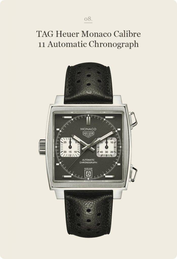 Спортивный хронограф TAG Heuer встретился с безразличными обзорами, когда он был запущен в 1969 году из-за его квадратного корпуса. Но его перспективы были запущены, когда Стив Маккуин носил его в эпическом фильме Le Mans 1971 года (который также встречался с безразличными обзорами первоначально).