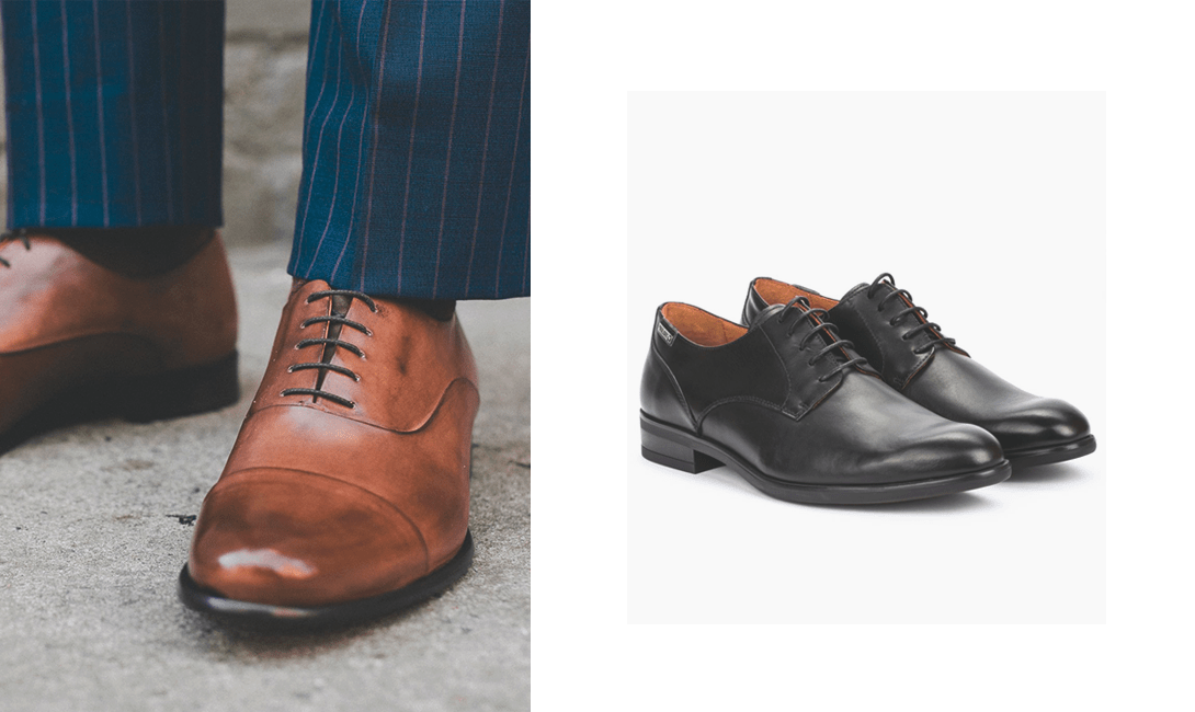 Дерби — это более универсальный вариант классической мужской обуви, которая в равной степени подойдет как для официальных мероприятий, так и для неформального стиля одежды. Отлично смотрятся с костюмами, повседневными брюками и хорошими джинсами. Основное отличие от оксфордов заключается в открытом типе шнуровки, что делает туфли более свободными.