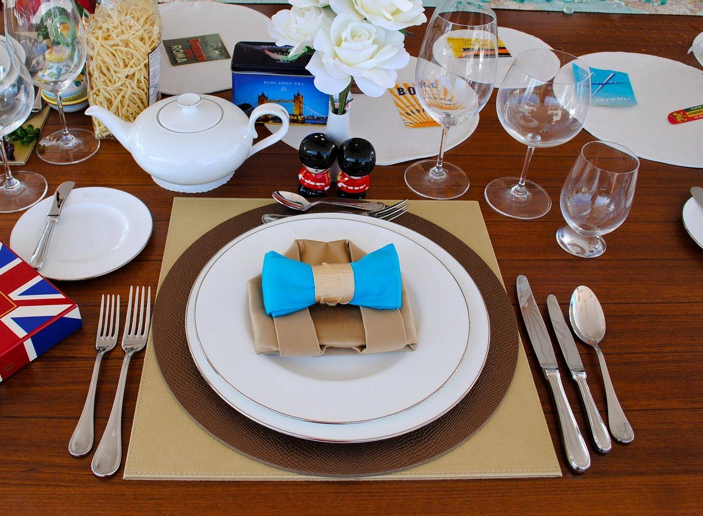 У каждого столового предмета свое расположение и назначение. Перед обедом с правой стороны от закусочной тарелки находятся ножик и ложка. С левой стороны принято ставить пирожковую, а также класть вилки и одноразовую – бумажную – салфетку.