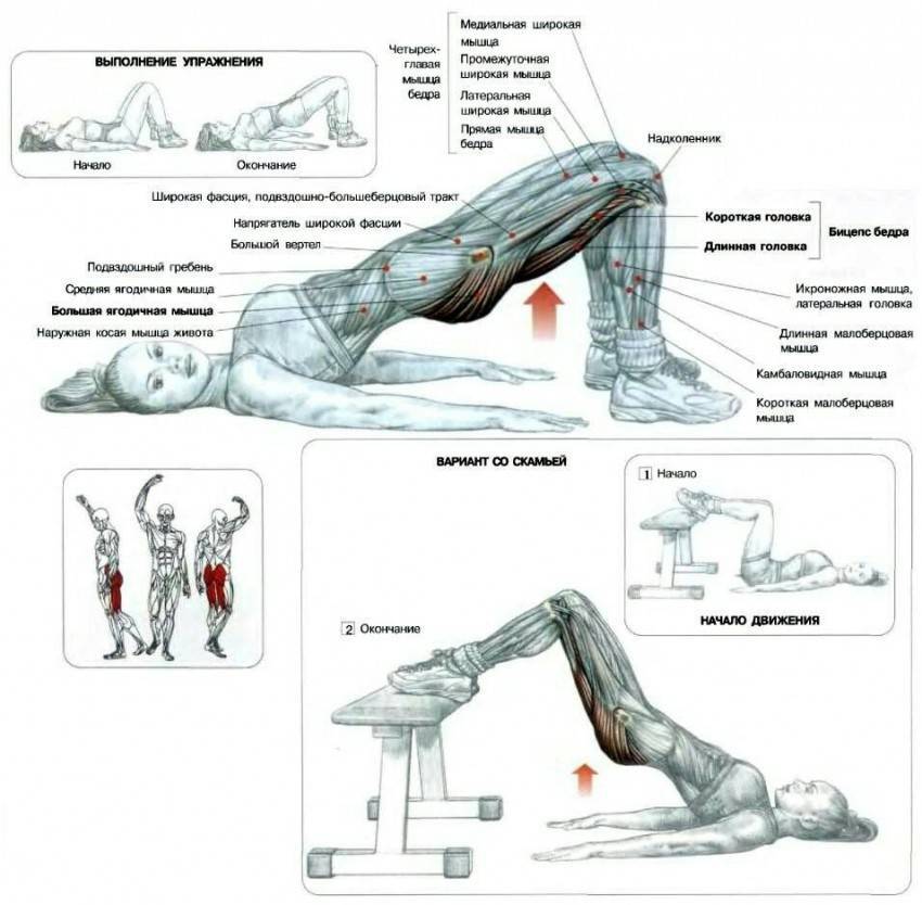 Упражнений, которые бы включали в работу только ягодичный мышцы – нет. Чаще всего тренинги, направленные на подтягивание ягодиц, задействуют и верхнюю поверхность бёдер, нижнюю часть спины и другие мышцы. Так что, достигая своей цели по созданию красивых ягодичных мышц, вы ещё и сделаете более стройной всю свою фигуру.