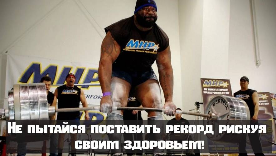 Первое правило в бодибилдинге, да и вообще в любом спорте. Чрезмерные нагрузки приводят только к травмам! Ведь действительно, не было еще ни одного человека который бы хватал любой вес без раздумья и стал выдающимся чемпионом. Зато атлетов заработавших так травмы, хоть отбавляй. Когда вы берете вес, с которым не можете контролировать, ваша техника автоматически становится неверной. Начиная от округления поясницы, и заканчивая выведением коленей за носок. Поэтому, если вы хотите на протяжении долгого времени получать результаты от своих тренировок. Значит увеличивайте рабочий вес постепенно. Особенно в таком травмоопасном упражнении как румынская тяга!